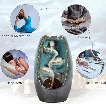 Disponible en una variedad de fragancias, nuestra cascada de incienso es ideal para reducir el estrés, mejorar la concentración y aportar una sensación de bienestar en el hogar o la oficina.