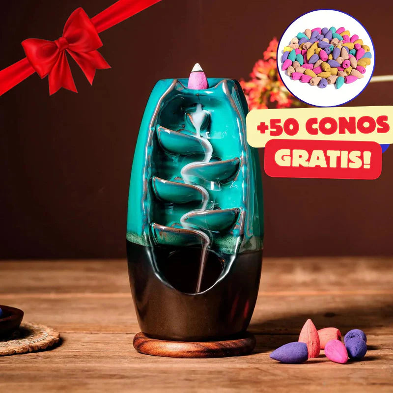 Su humo fluye en forma de cascada, creando un ambiente tranquilo y atractivo. Lo que aporta un toque estético y elegante a cualquier espacio, combinando funcionalidad y belleza.